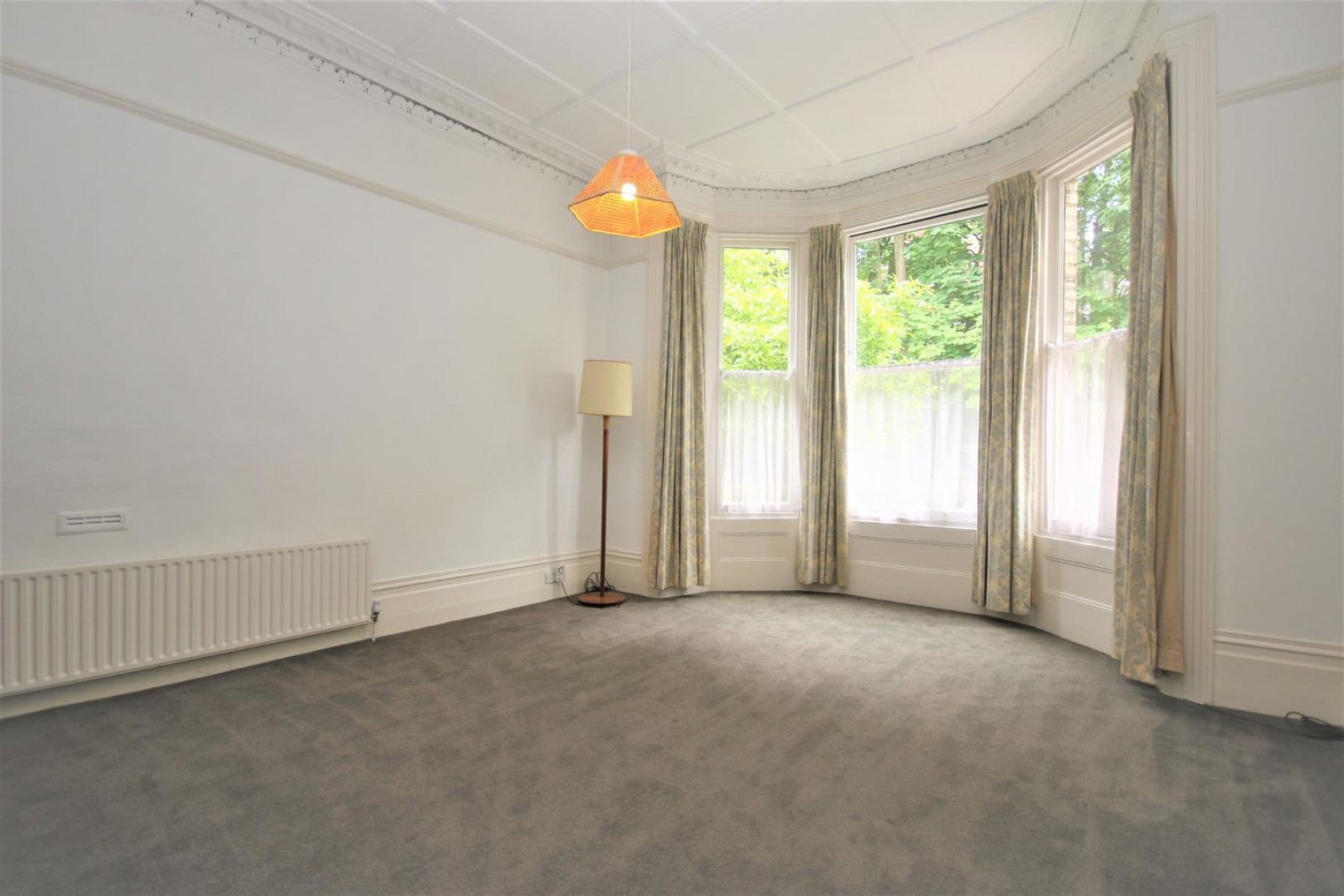 Generously proportioned accommodation comprises large open plan living room with bay window and kitchen with appliances, large master bedroom with bay window and feature fireplace, two additional double bedrooms (one with balcony overlooking gardens), bathroom with bath and shower, additional w/c and use shared garden. Offered unfurnished, available now.